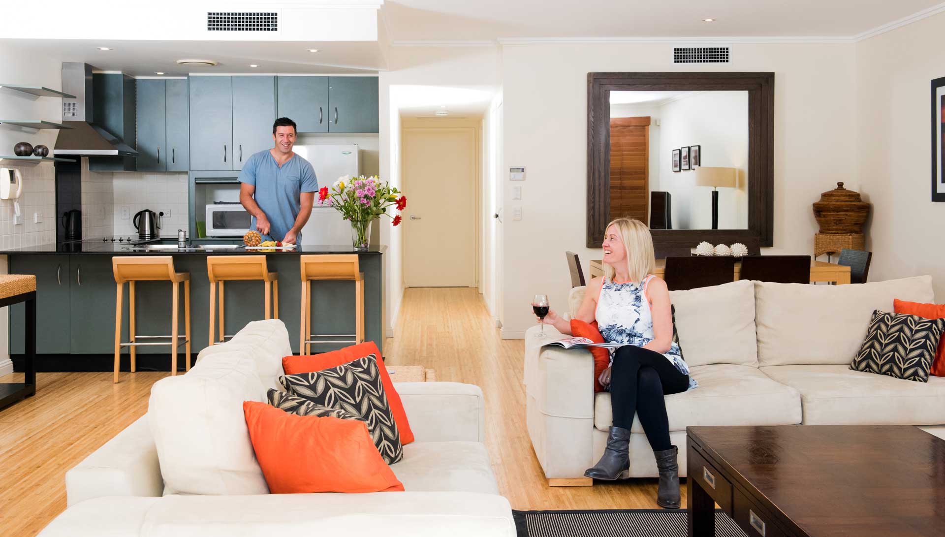 Spacious north facing airy apartments. Self-contained offering a full kitchen and plenty of room for dining & entertaining. Large glass sliders open to the north-facing balcony overlooking the 25 metre heated pool.